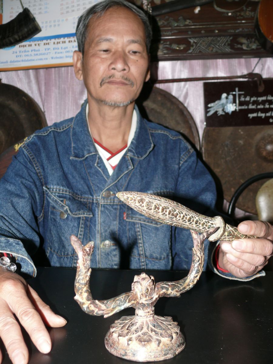 Trong chuyến đi “giải mã kho báu” của người Chàm trên đất Nam Tây Nguyên, chúng tôi được giới sưu tầm cổ vật ở Đà Lạt giới thiệu cho hai người được mệnh danh là “vua” đồ cổ, hiện sống ở TP. Đà Lạt. Người sưu tập cổ vật ở Lâm Đồng nói chung và Đà Lạt nói riêng thì không thiếu, nhưng việc tầm được những cổ vật thuộc hàng “độc” thì có lẽ chỉ có ông Nguyễn Đăng Thanh và ông T. (vì sự tế nhị nên ông chủ cổ vật này yêu cầu giấu tên và địa chỉ). Hai “ông trùm” cổ vật này sở hữu trong tay rất nhiều cổ vật quý.